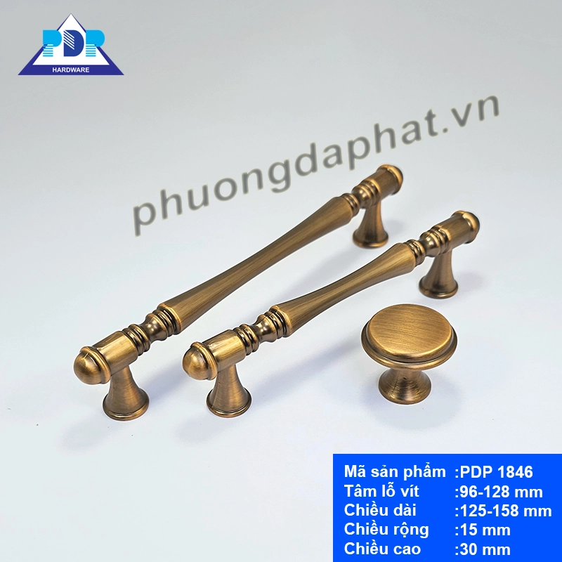 - Tay nắm tủ cổ điển PDP1846 được làm từ hợp kim kẽm cao cấp, phủ màu cafe sang trọng. Thiết kế tinh xảo, chắc chắn, phù hợp với tủ gỗ phong cách cổ điển. Lý tưởng cho tủ bếp, tủ quần áo, tủ trang trí.