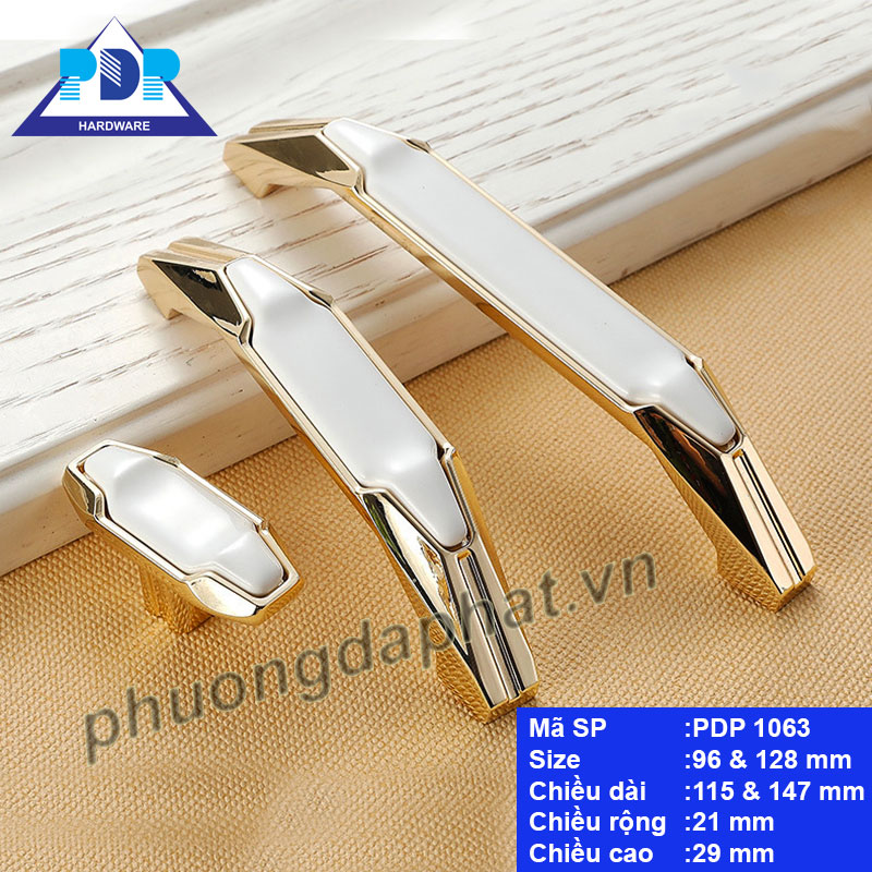- Tay Nắm Tủ Gốm Sứ PDP1063 với màu vàng sang trọng cùng điểm nhấn là chất liệu sứ ngay trung tâm tay cầm pha trộn nét cổ điển và hiện đại.