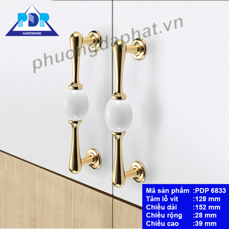 - Tay Nắm Tủ Gốm Sứ Phong Cách Châu Âu PDP6833 rất quyến rũ qua những đường cong tinh tế cùng màu vàng bóng và trắng tinh khôi mang lại sự sang trọng và đẳng cấp cho nội thất.