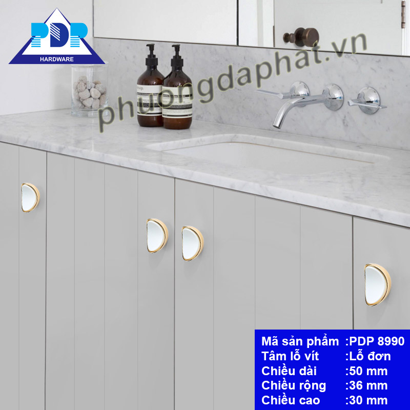 - Tay Nắm Tủ Hiện Đại PDP8990 rất ấn tượng về diện mạo với màu trắng hiện đại ngay trung tâm tay tủ, kết hợp cùng màu vàng bóng. Pha trộn nét cổ điển và hiện đại.