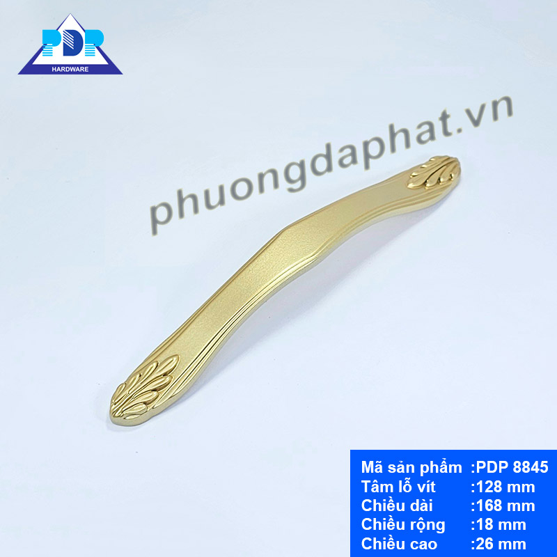 - Tay Nắm Tủ Màu Vàng Mờ PDP8845 duyên dáng với họa tiết phía hai đầu liên kết tạo nên mọi nguồn cảm hứng cho nội thất gỗ, là kết tinh của sự khéo léo và tỉ mỉ